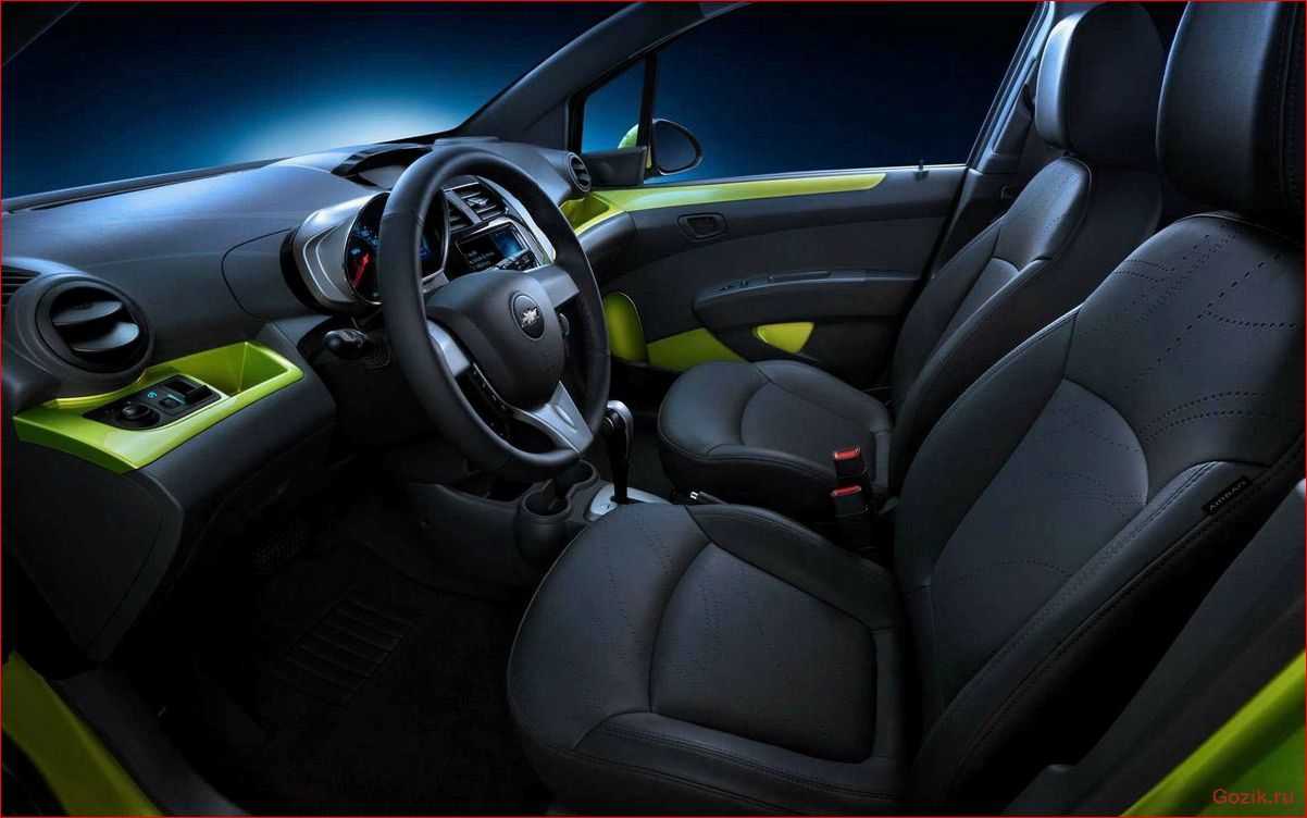 - Комфортный салон. Шевроле Спарк обладает просторным салоном, в котором удобно размещаются водитель и пассажиры. Кресла обеспечивают хорошую поддержку и комфорт во время поездки.